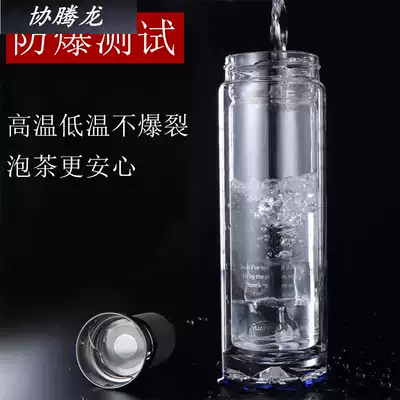 Brand double-layer glass men's high-end business insulation with lid Crystal cup Tea water separation tea cup Water cup