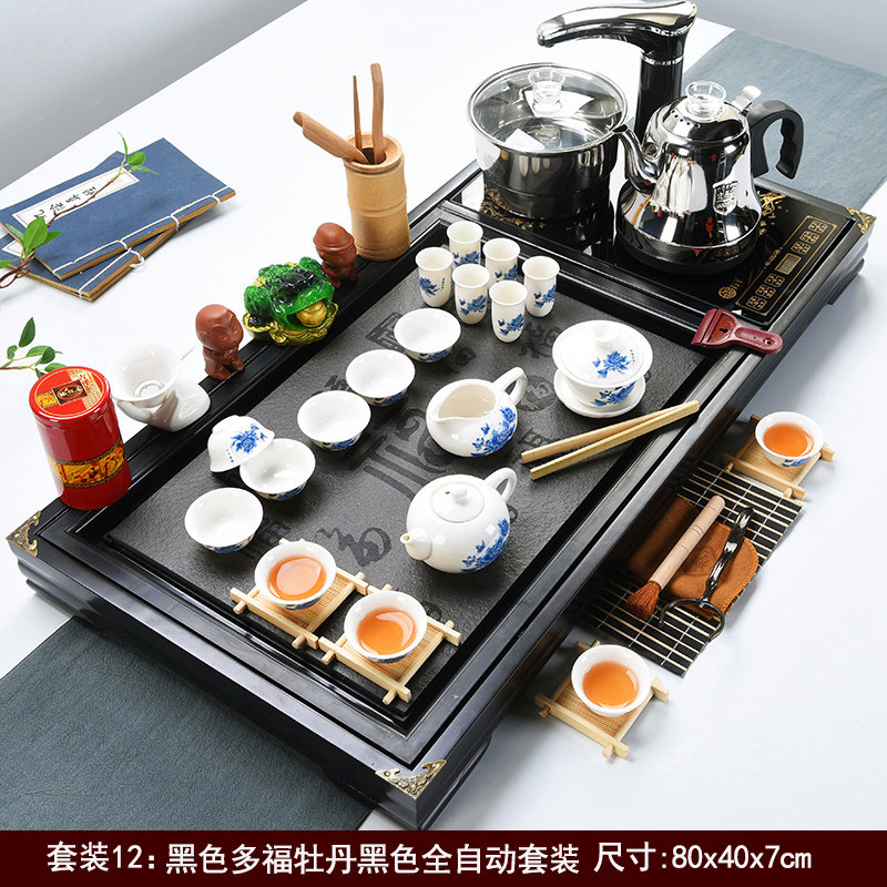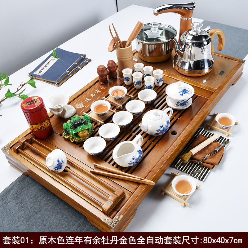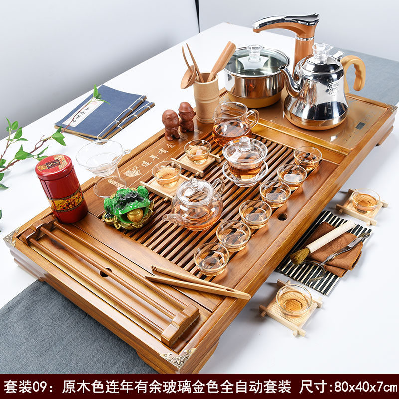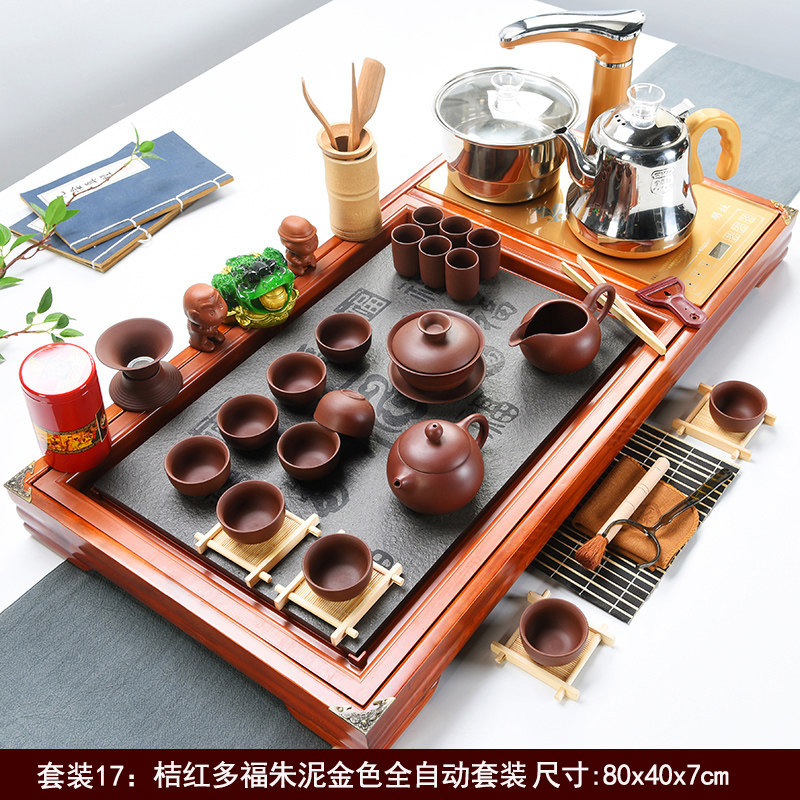 Automatic purple sand tea set Kung fu solid wood tea tray Kettle one modern simple household tea table tea sea
