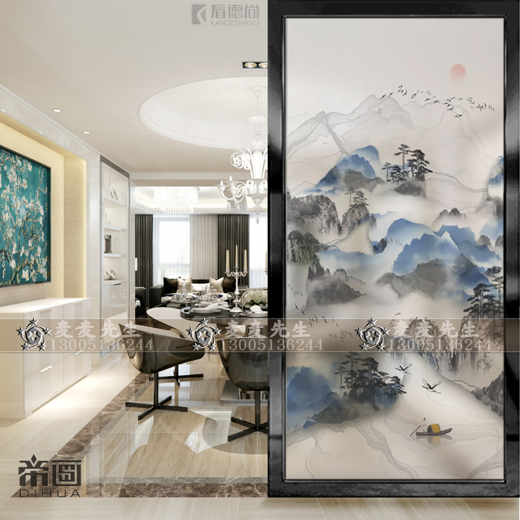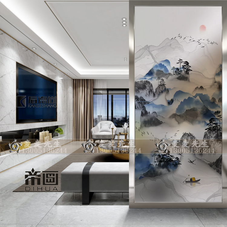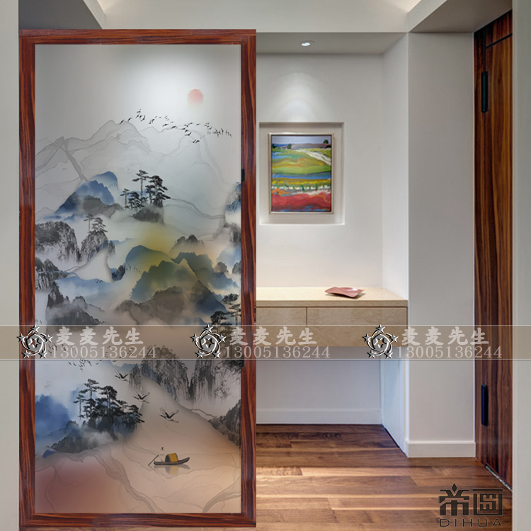 Modern Art Glass Living Room Partition Simple Creative Screen Entrance Entrance Restaurant Frosted Decoration Abstract Landscape