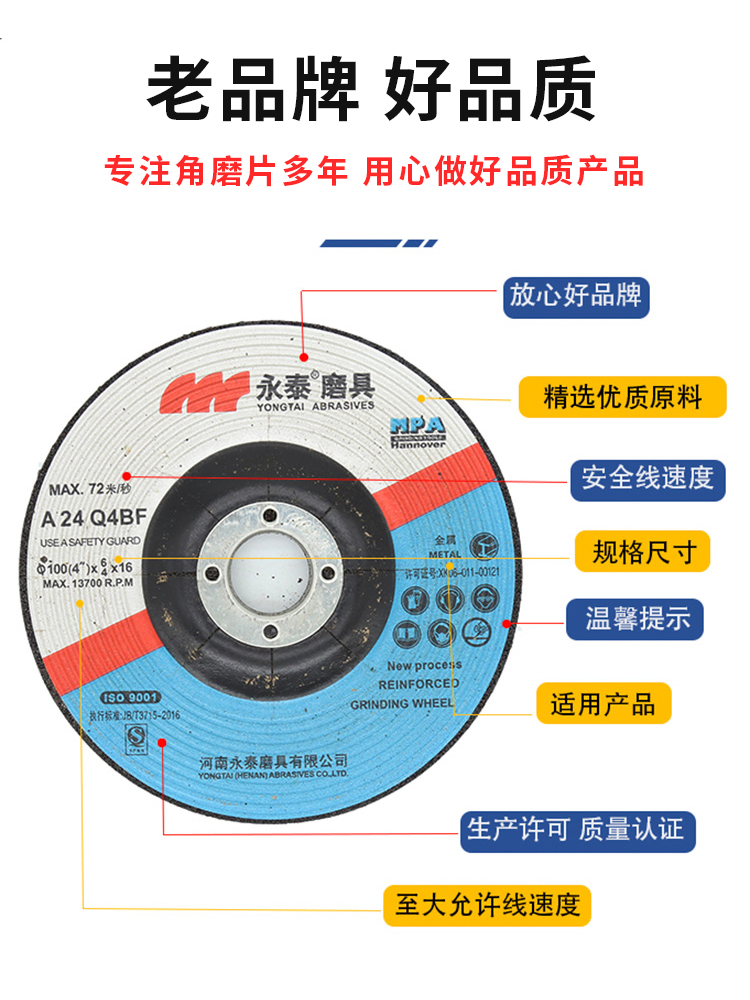 Yongtai angle to the polished stainless steel grinding sheet 100 125 150*6 resin grinding wheel angular grinding slice