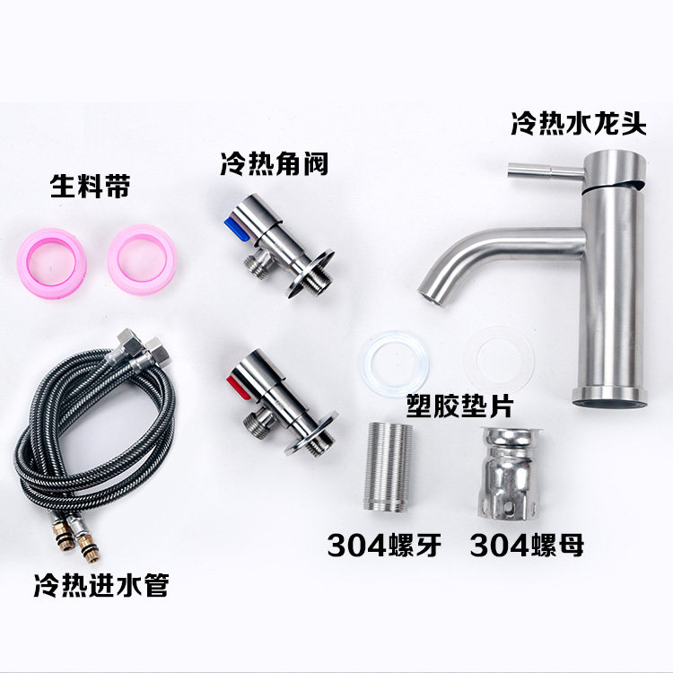 Brushed basin hot and cold water faucet ceramic basin 304 stainless steel thickened wash basin wash basin single hole faucet