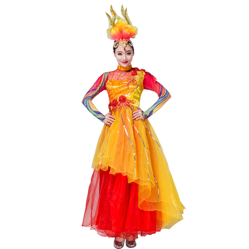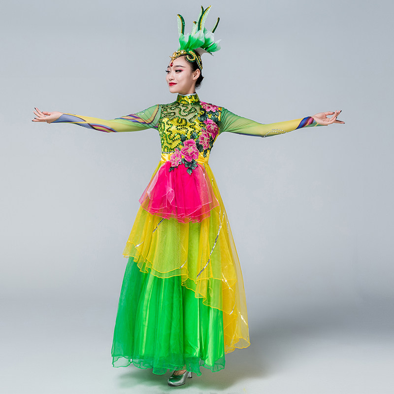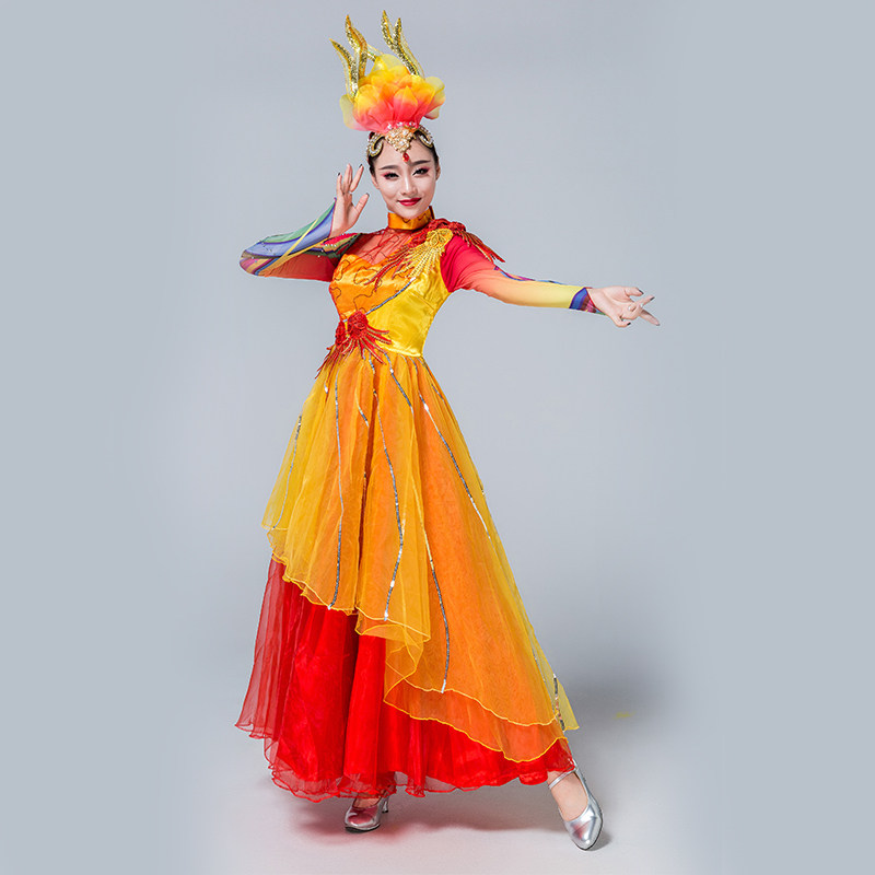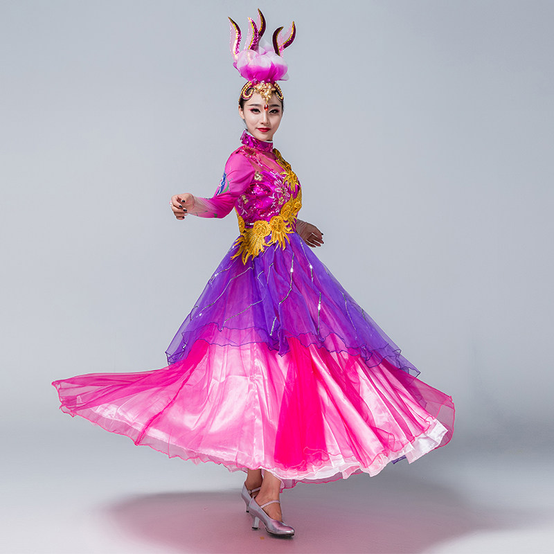 Costume adult female 2018 new dance clothing female suit autumn new modern group dance opening dance big swing skirt