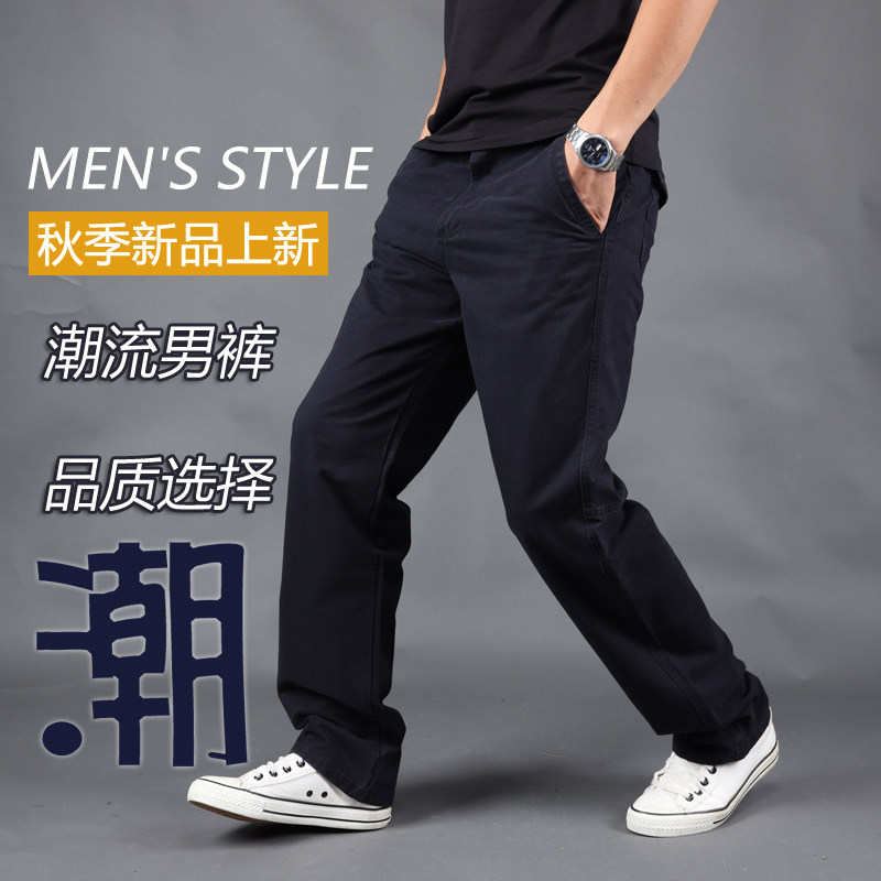 Spring and Autumn New Men's Loose Straight Casual Trousers Youth Simple Cotton Fashion Trend Tooling Washed Pants