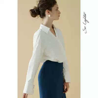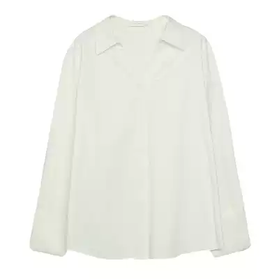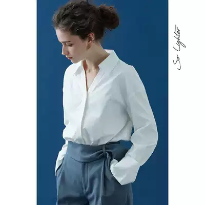 SoLighter loose cotton V-neck slim white shirt women's casual long sleeve top
