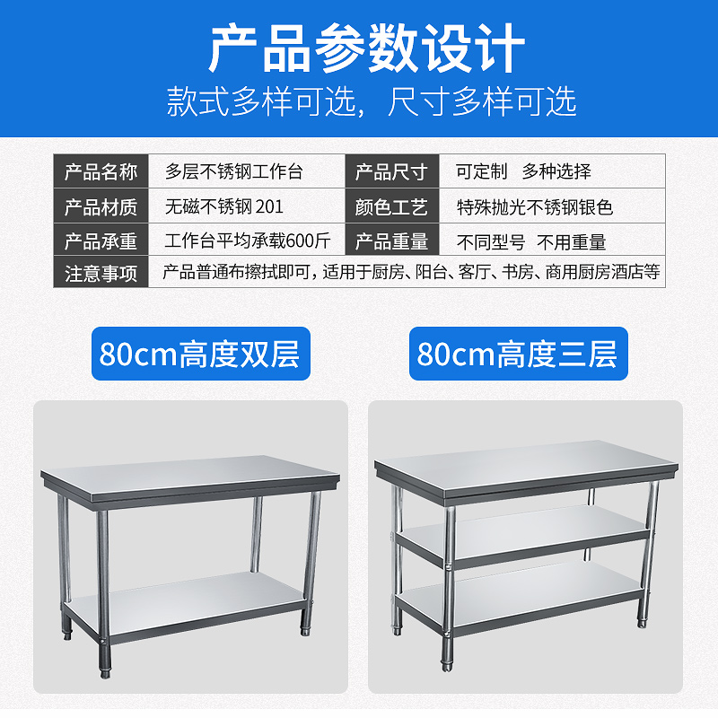 Stainless steel workbench three-layer household commercial restaurant kitchen operation table lotus table packaging table top