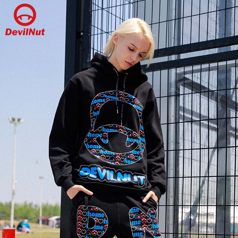 DEVIL NUT demons Tide Cards Autumn Winter men and women Grey large size Loose Wear trousers thick cotton T jacket AOL AET