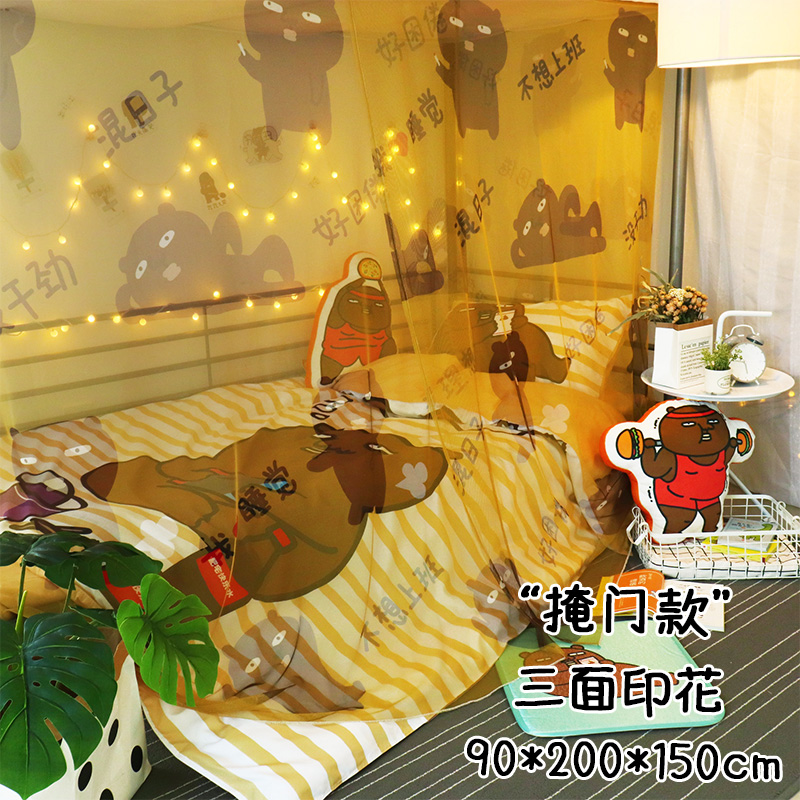 Genuine authorized perfunctory bear college student dormitory single bed square top encrypted dustproof mosquito net