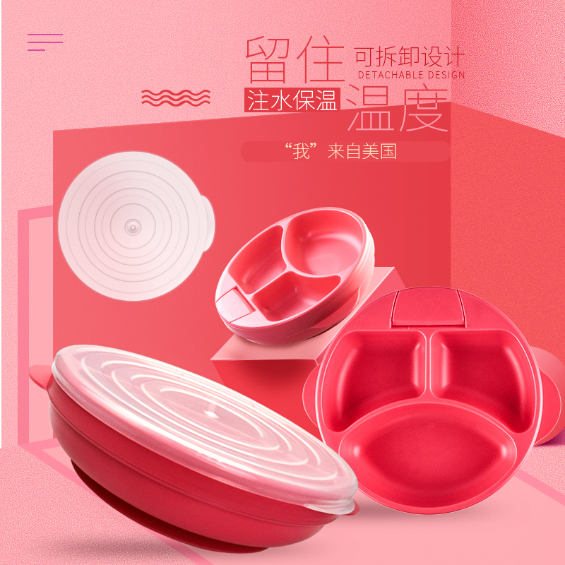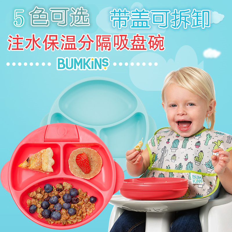 American Bumkins water injection insulation bowl baby sub-dinner plate children cutlery anti-fall with cover sidefood suction cup bowl