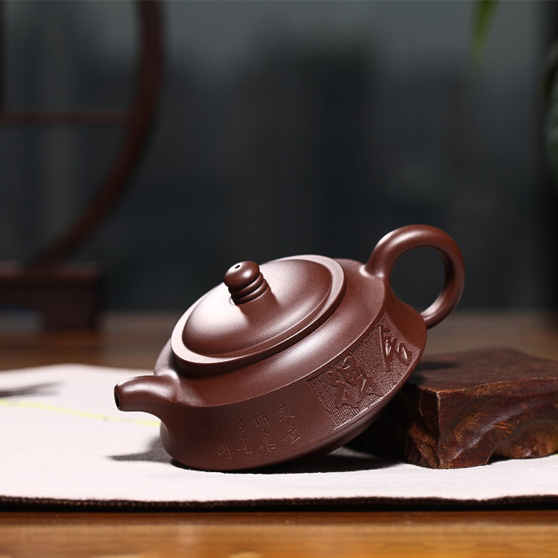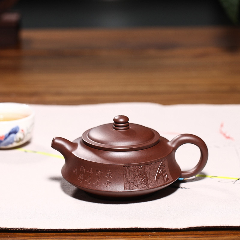 Through the ages yixing zisha teapot masters pure handmade tea teapot kung fu tea set purple clay carved painting