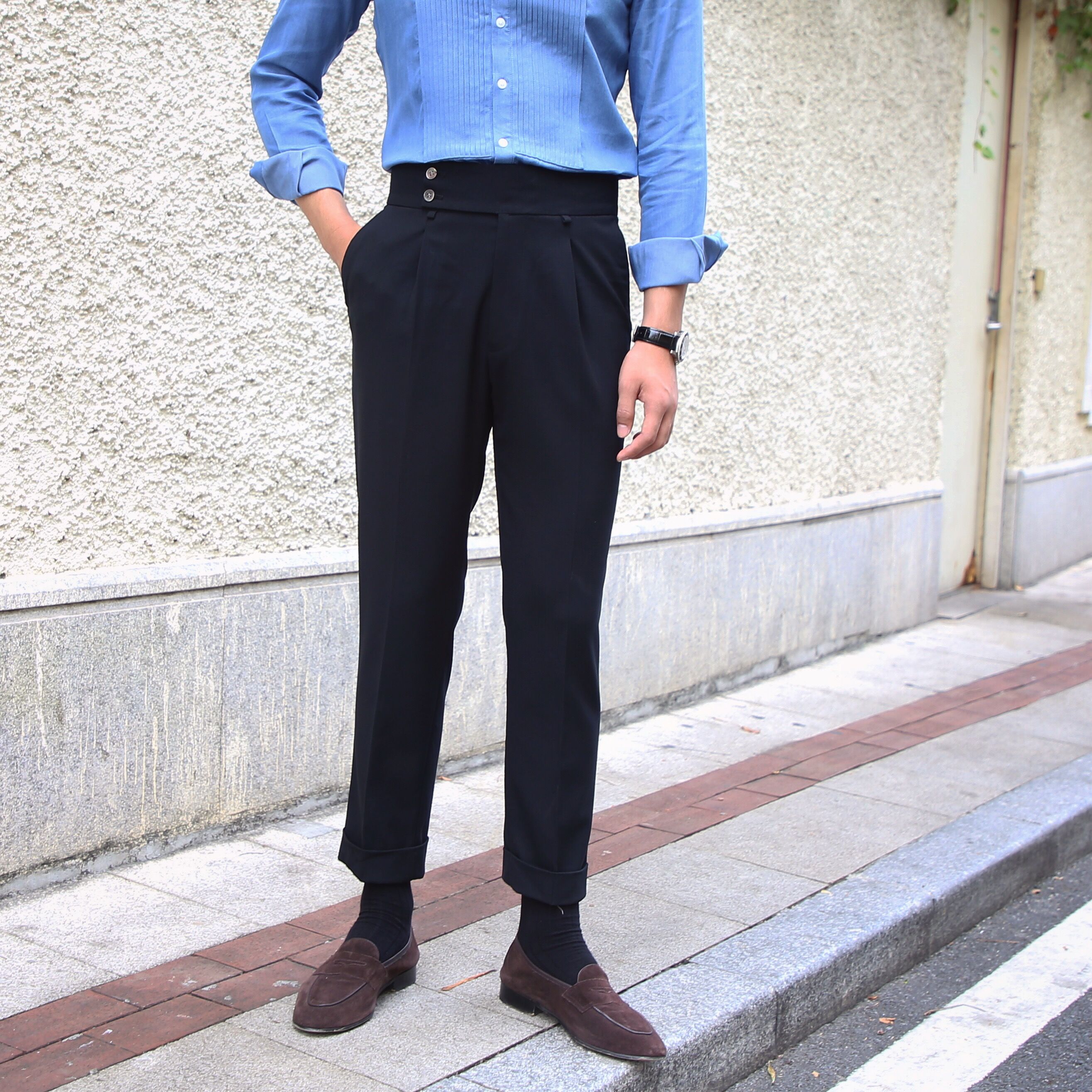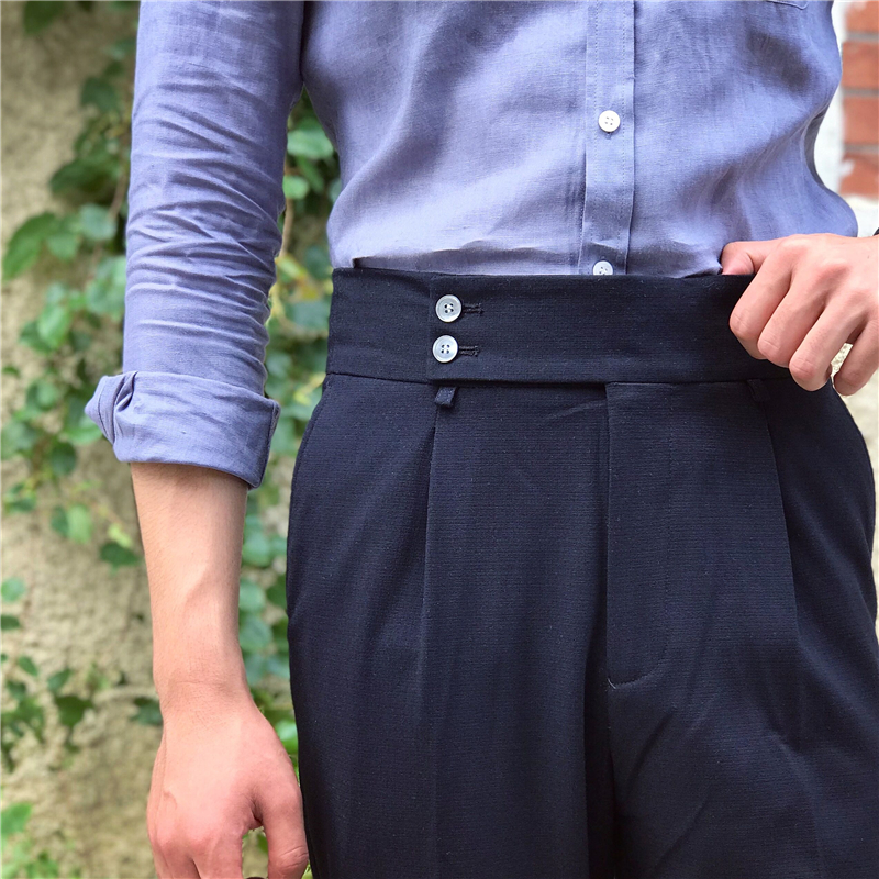 Deer Trio Willy-style High Set Spring High Waist Deep Blue Straight Drum Pants Light Lavish Leisure 100 Hitch Male Pants Tide Man