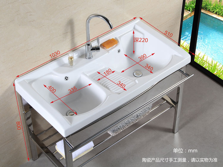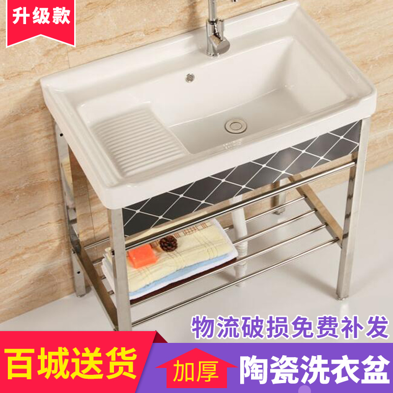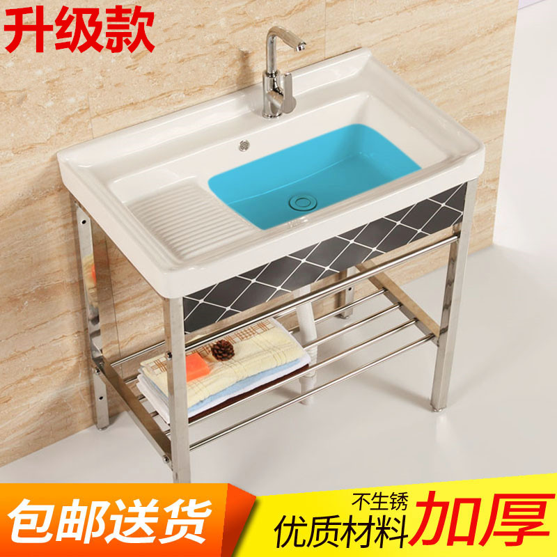 Ceramic Laundry Basin Stainless Steel Bracket Laundry Pool Balcony Sink With Washboard Integrated Table Basin Home Floor