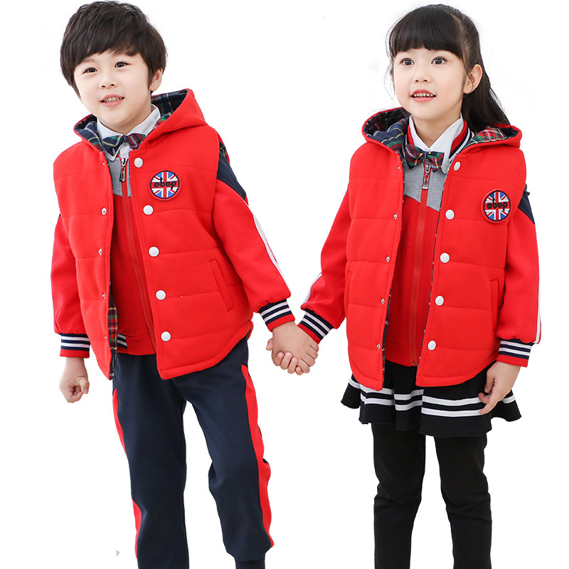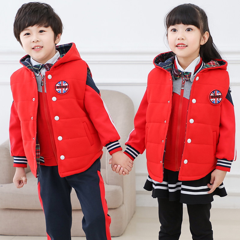 Kindergarten clothing autumn and winter clothing children's school uniform set primary school student sports class clothing winter padded waistcoat three-piece set