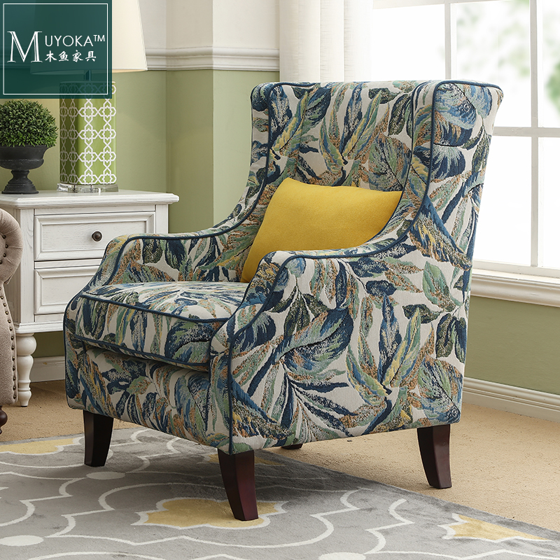 American countryside small family style single position sofa American Tiger chair cotton linen customizable color casual seat-Taobao