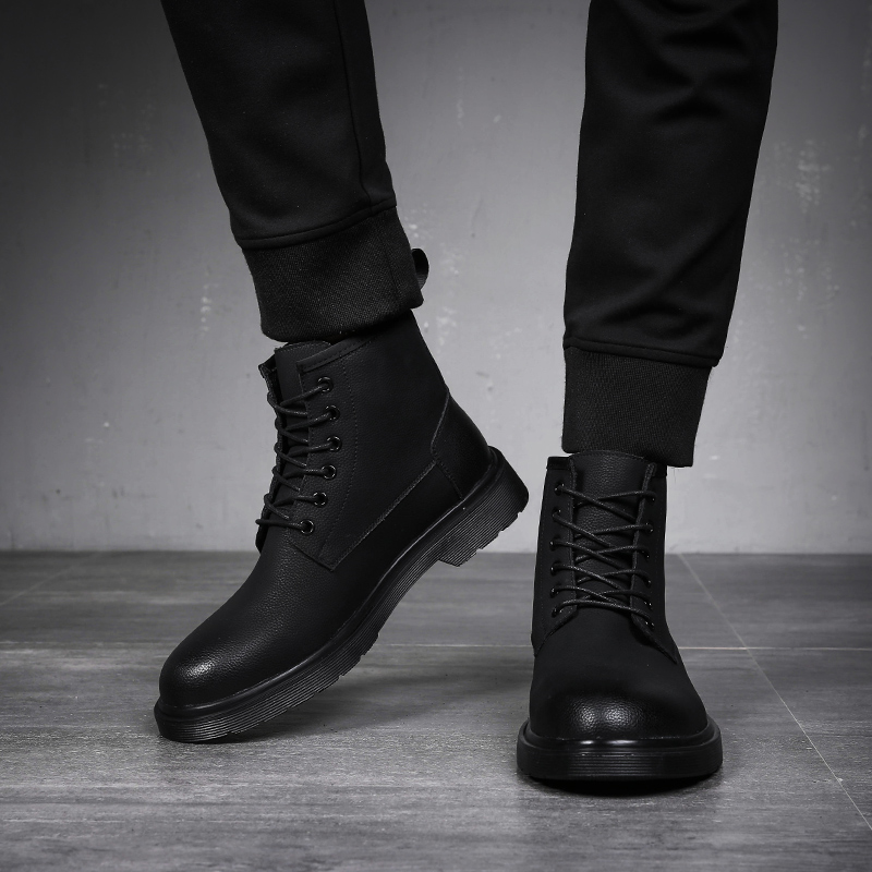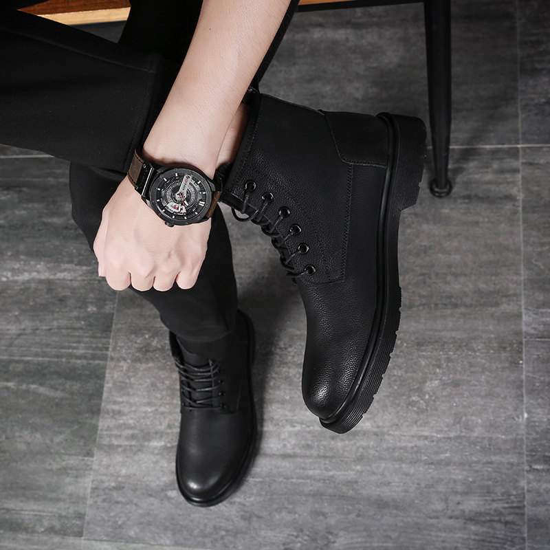 Martin Boots Man Winter Gmao Black 100 Hitch Middle Cylinder Leather Boots Male boots Men's Ynlen Snowy Boots High Cylinder Shoes Man