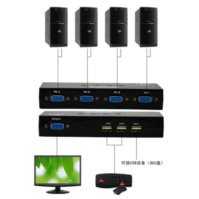 SZHY-LINK 4CH USB VGA KVM Switch Sharer 4 in 1 out with HUB video VGA switcher