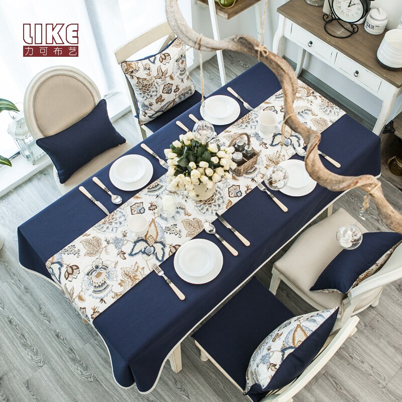Fabric tablecloth table flag European-style American pastoral cotton and linen rectangular coffee table mat tablecloth large round table TV cabinet