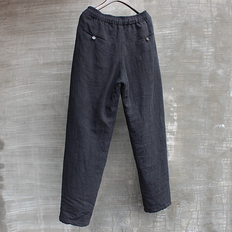 Men's casual cotton pants loose winter cotton thickened outside wear large size Chinese style men's linen pants warm black