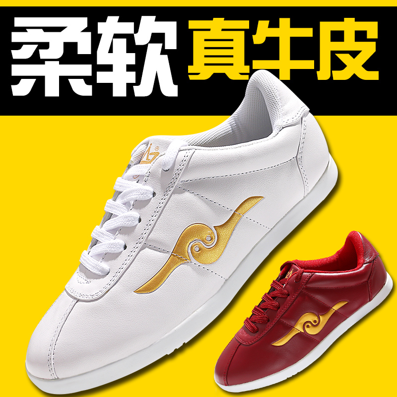 Tai Chi Shoes Women Genuine Leather Bull Gluten Bottom Summer Soft Bull Leather Martial Arts Training Shoes Sneakers Taijiquan Kigong Shoe Men