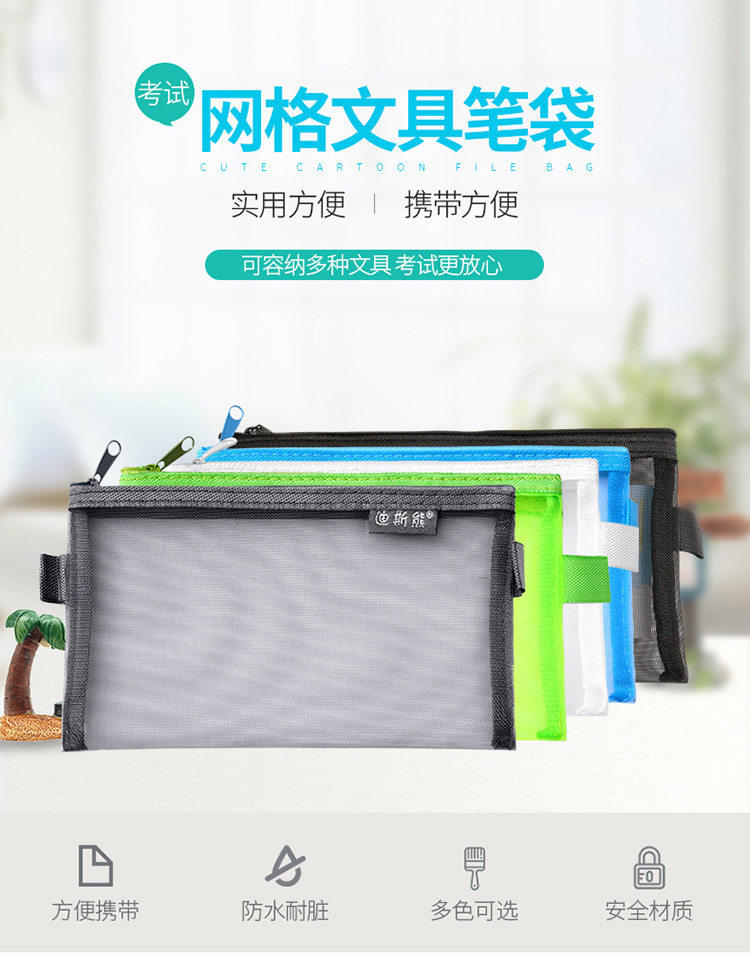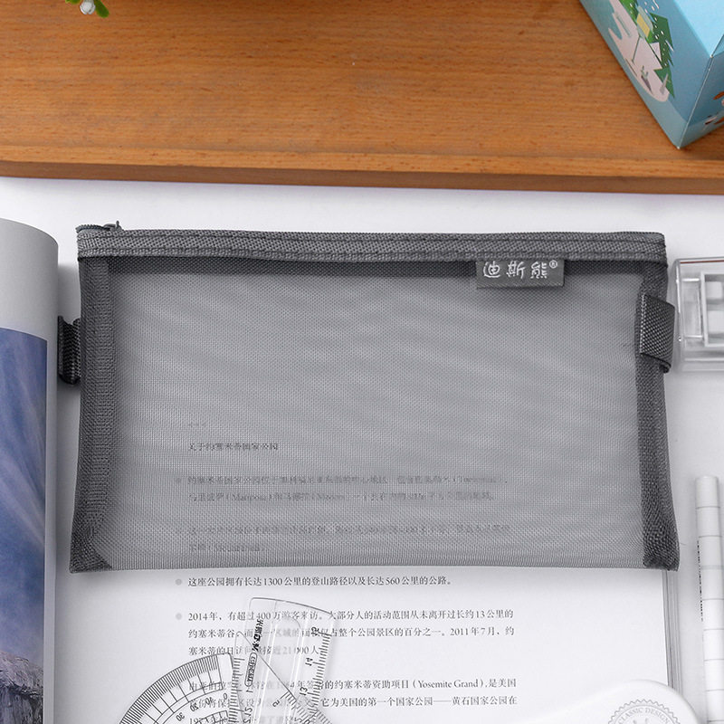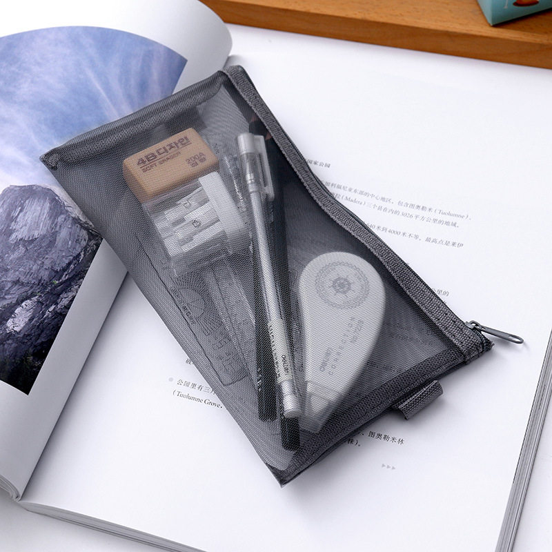 Exam Pen Bag Transparent Mesh Yarn Pencil Case High Primary School Students Portable File Bag Bill Cosmetics Cashier Bag