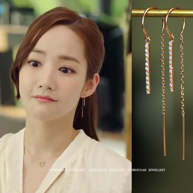 Fang Sugar's Golden Secretary with the same paragraph 925 pure silver U type ear necklace South Korean long version of Lingyin Brief about Japan-ROK