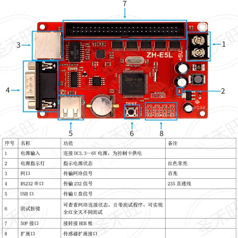 AVIC control card ZH-E5L network port U disk serial port communication LED advertising walk word display motherboard