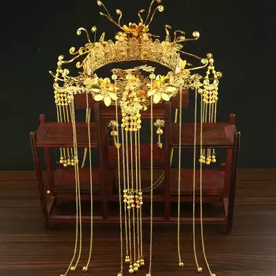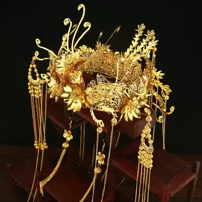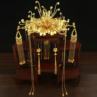 Full Tao 2021 new bride headwear Chinese wedding ancient hair accessories dragon and phoenix hanging show grass clothing phoenix crown wedding accessories