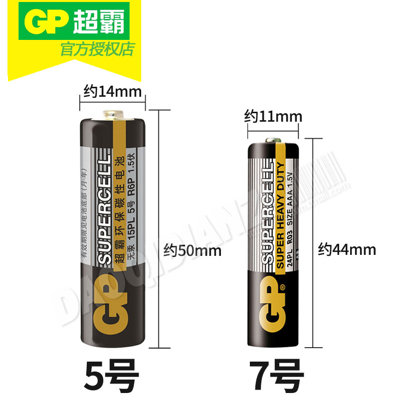 GP super Pa No 5 battery No 5 No 7 No 7 AAA small dry battery carbon carbon household air conditioning remote control clock alarm clock 1 5V large commodity children's toys 40 grains wholesale