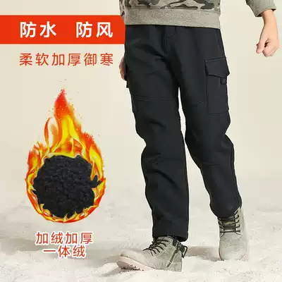 Beshy and children's assault pants men and women children autumn and winter plus velvet warm pants windproof waterproof pants Middle big children ski pants