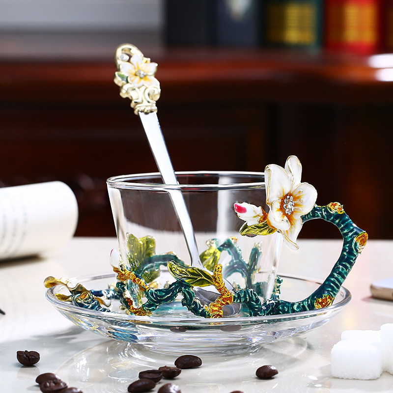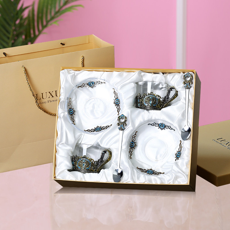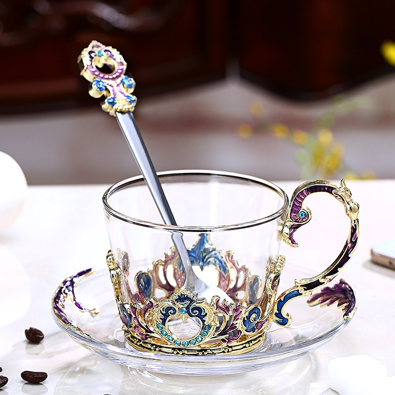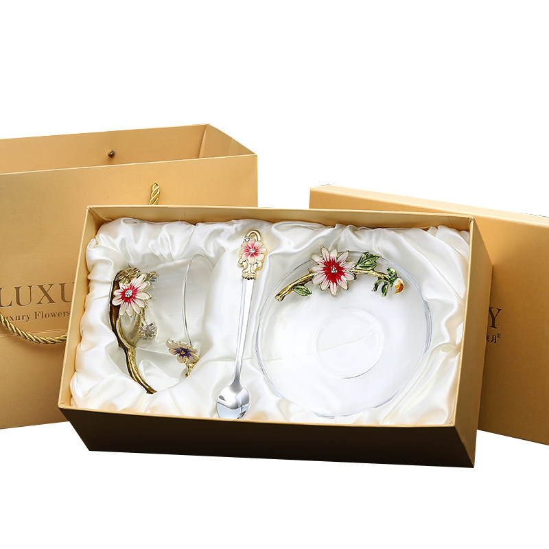 Nordic Style Coffee Cup Single enamel Spoon Gift boxed golden kingmaker Wind Fan Coffee Cup Single Enamel Spoon Gift boxed Chrysanthemum Coffee Cup Single enamel Spoon Gift Box gold Iris Tail Coffee Cup