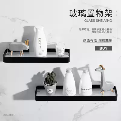 Shower room rack bathroom mirror front shelf black Nordic dressing room washing glass rack no hole