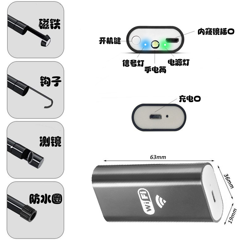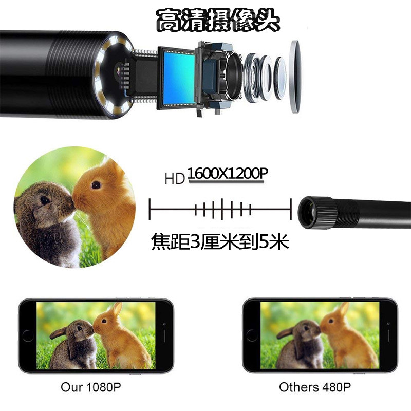 5 million HD WiFi surveillance endoscopy photography lens underwater Android Apple USB monitor industrial auto repair pipeline