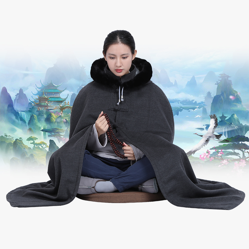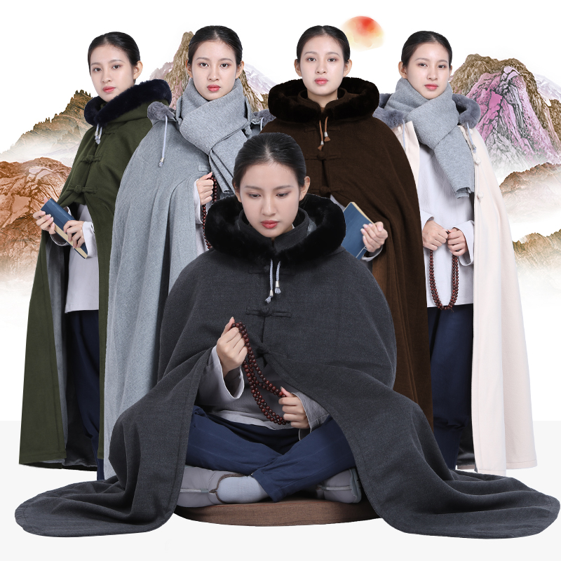Mao Twins Meditation cloak with a hat plush cold winter monk clothes plush coat meditation for men and women