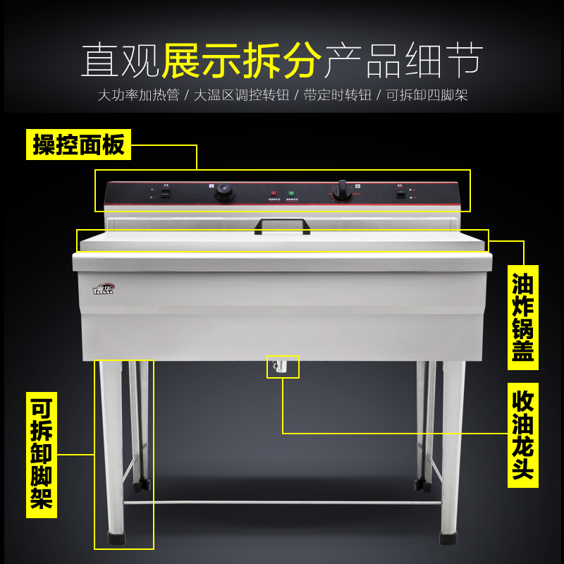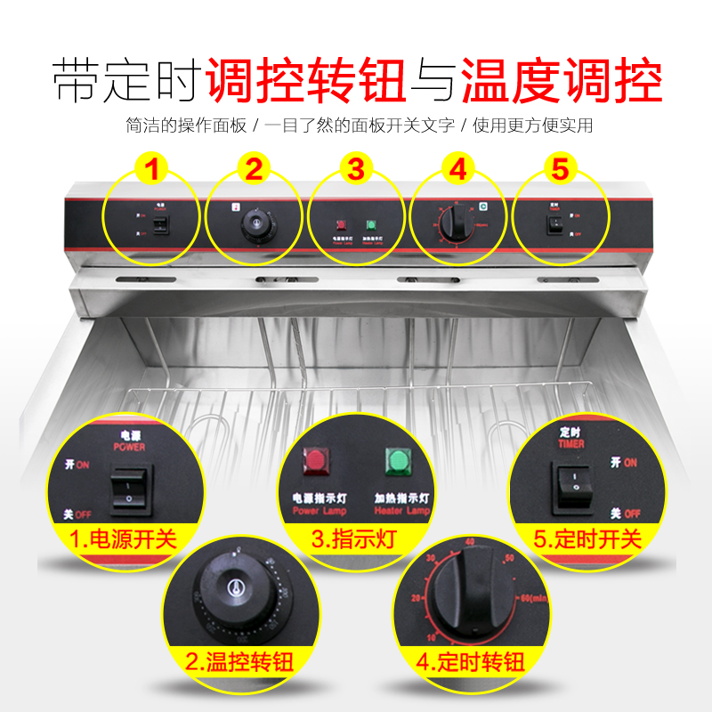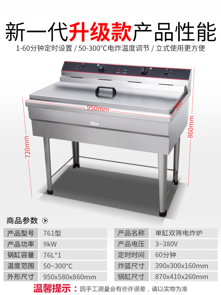 Large capacity commercial fried chicken fried fried oil fried vertical single - cylinder double hung basket with timed electric boiler 380V