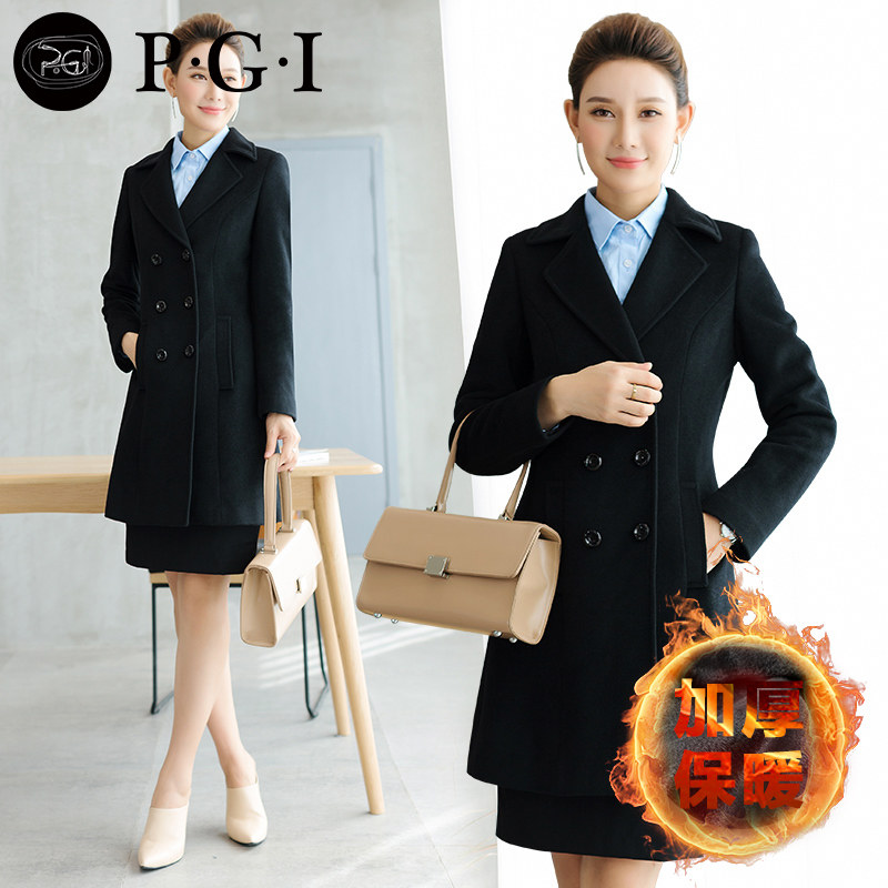 Professional woolen coat suit collar woolen coat women's mid-length section with cotton and thickened 2023 new slim-fit OL tooling