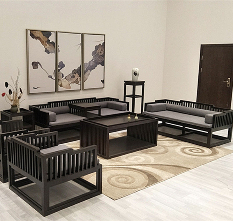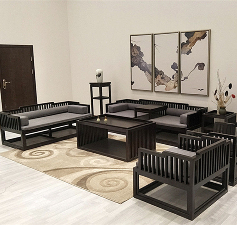 New Chinese sofa Luhan bed all-solid wood living room cloth sofa combined Zen sample room furniture customization