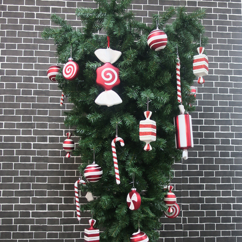 Christmas Inverted Hanging Tree 1 8-2 4 m Red White Candy Decoration Inverted Hanging Tree Decorations Wedding Festive Arrangement Supplies