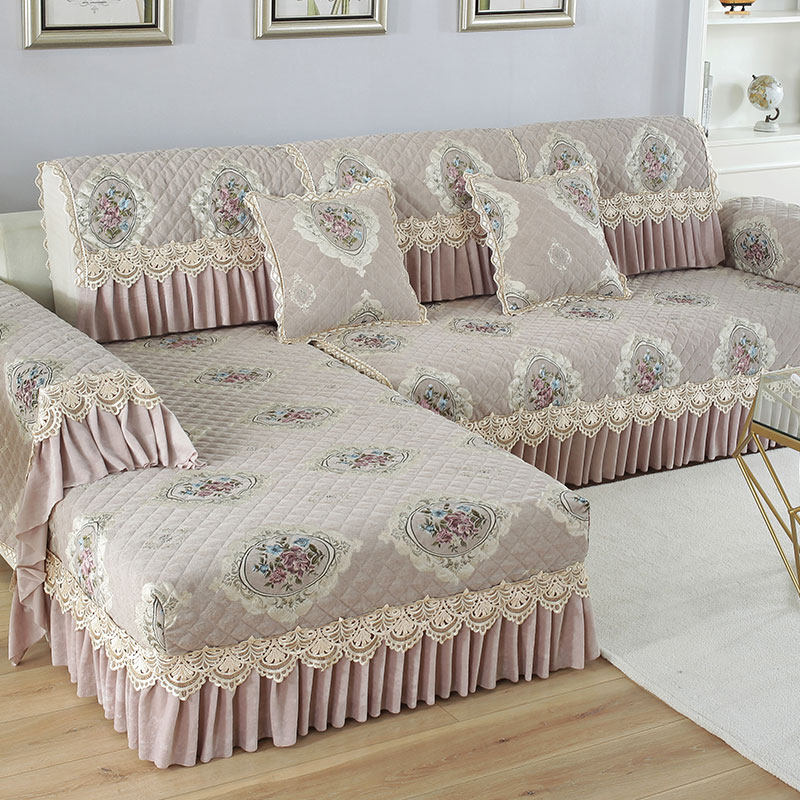 European-style high-end luxury chenille sofa cushion cover fabric four seasons universal non-slip combination leather sofa cover custom