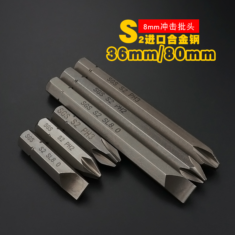 S2 alloy shock batch head 8mm straight cross strength high electric Beatle screw opener with magnetic striking screw driver head