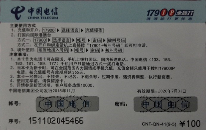 China Telecom International Tube Card International Card 370 yuan valid 2024-1-31