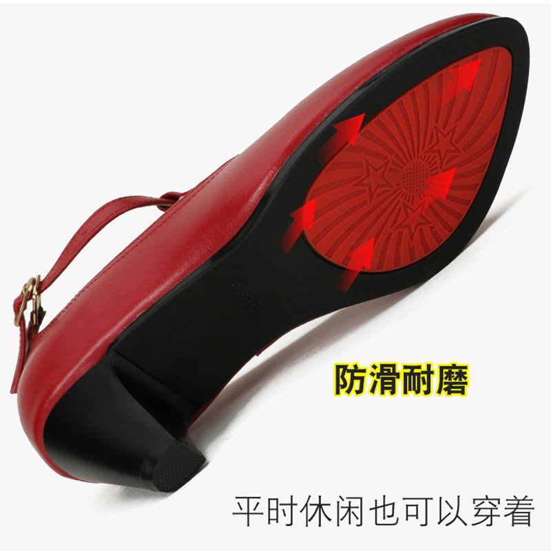 Spring and summer new leather latin dance shoes female adult middle-heeled high-heeled dance shoes square social modern dance shoes