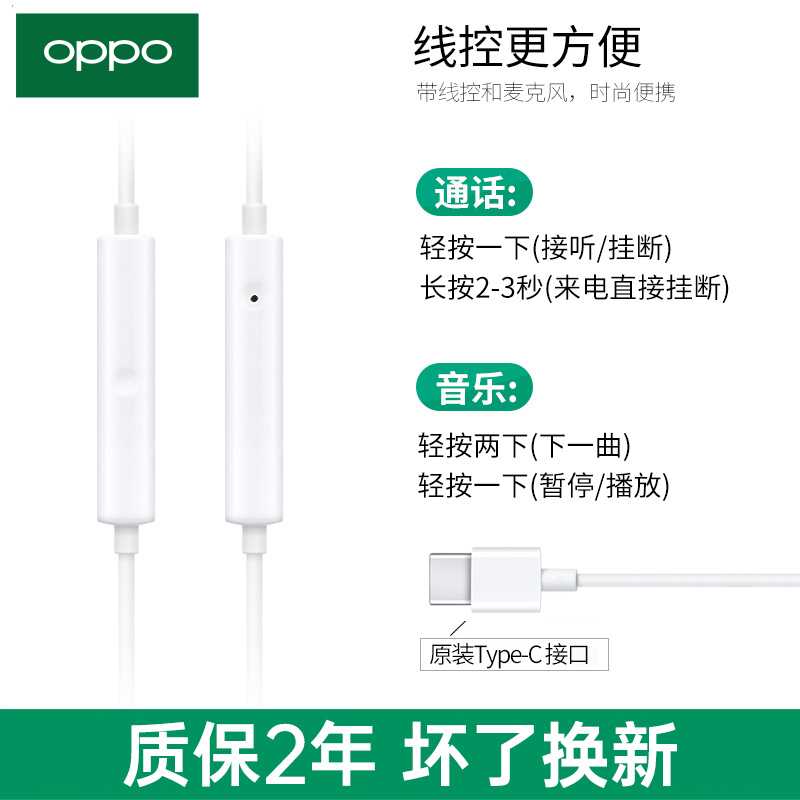 OPPOMH135 original headphones half-in-ear style opporeno8 7 6 5 4 r17 cable type-c headphones-Taobao