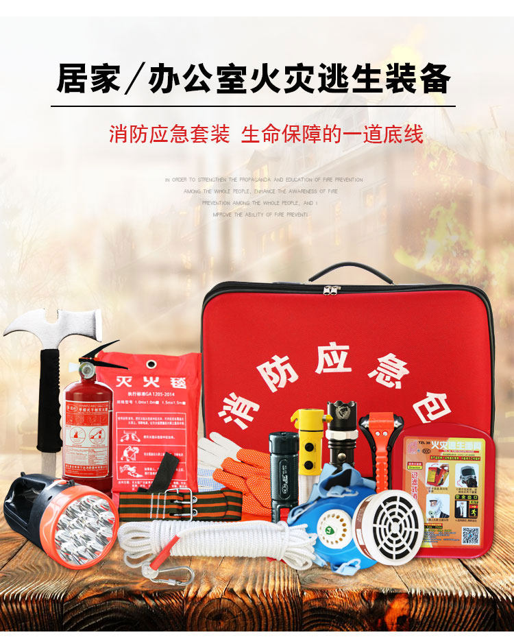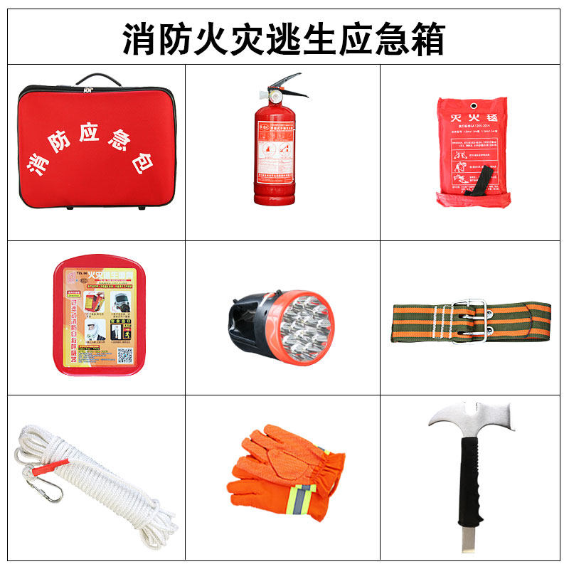 Set one (fire five-piece set) set two (fire seven-piece set) set three (a family of three) set four (fire inspection model) set five (fire smoke sense model) set six (fire slow down) safety hammer fire empty bag portable searchlight fire mask gas mask fire blanket 20 meters steel wire fire rope 20 meters ordinary rope three-in-one flashlight rope standard 20 meters length per meter plus 1.5 yuan storage bag 1KG fire extinguisher waist axe fire box empty box