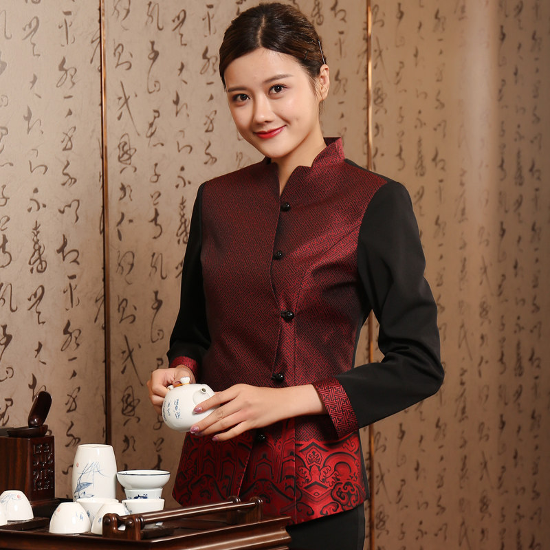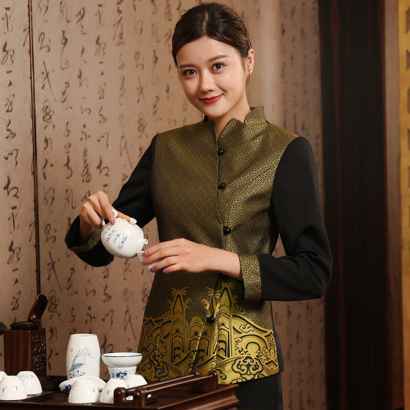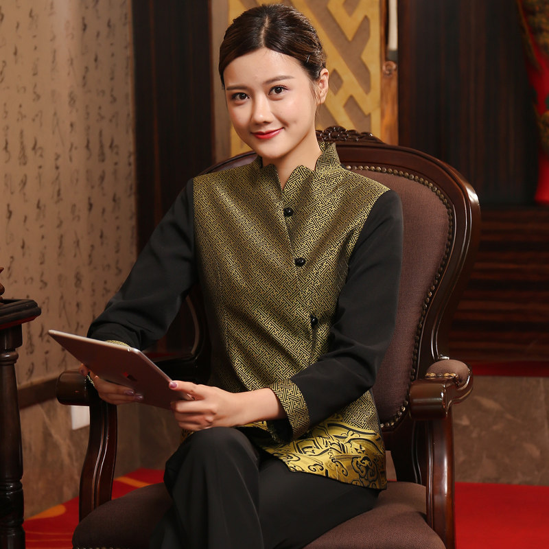 Hot pot shop Teahouse Catering Teahouse Tea art Tang uniform Hotel dining room Hotel waiter overalls Long-sleeved female