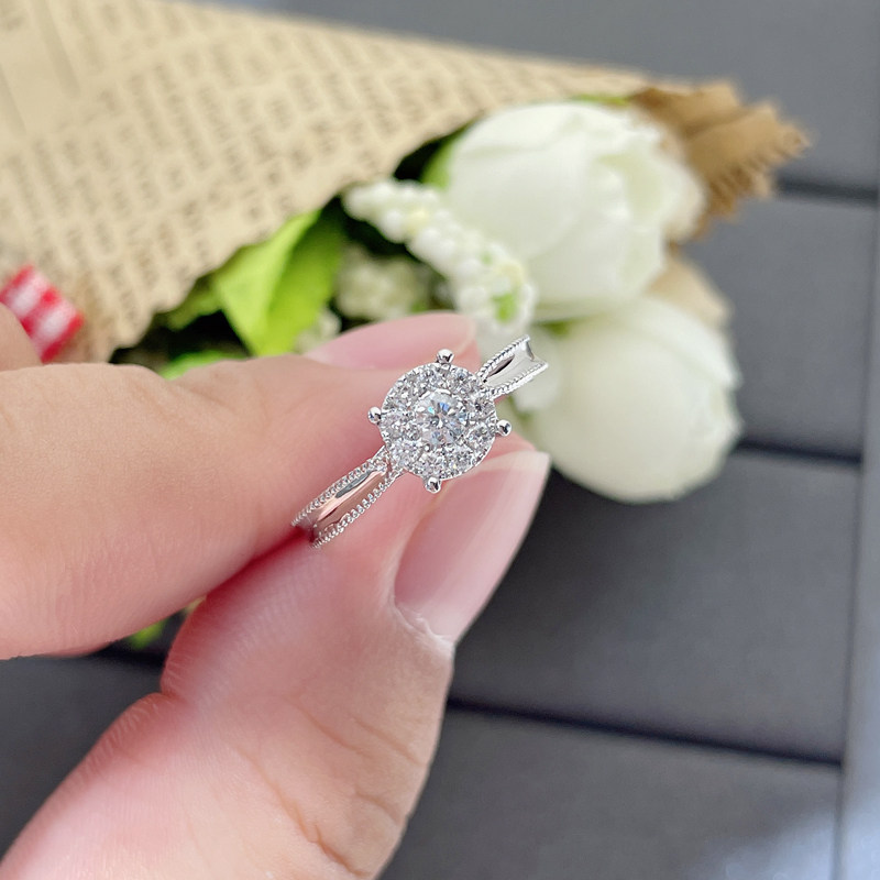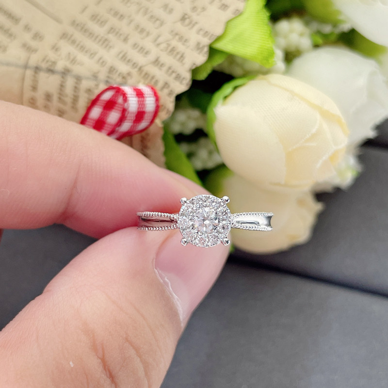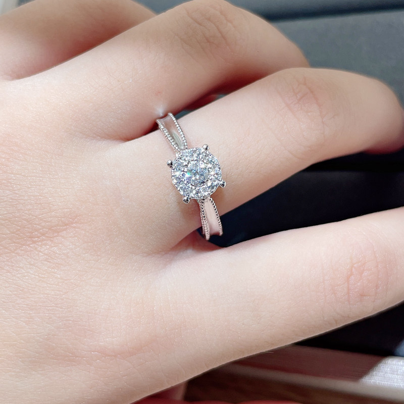 18K platinum pack with 1 carat diamond ring 30 points married diamond ring wedding ring girl brick ring counter