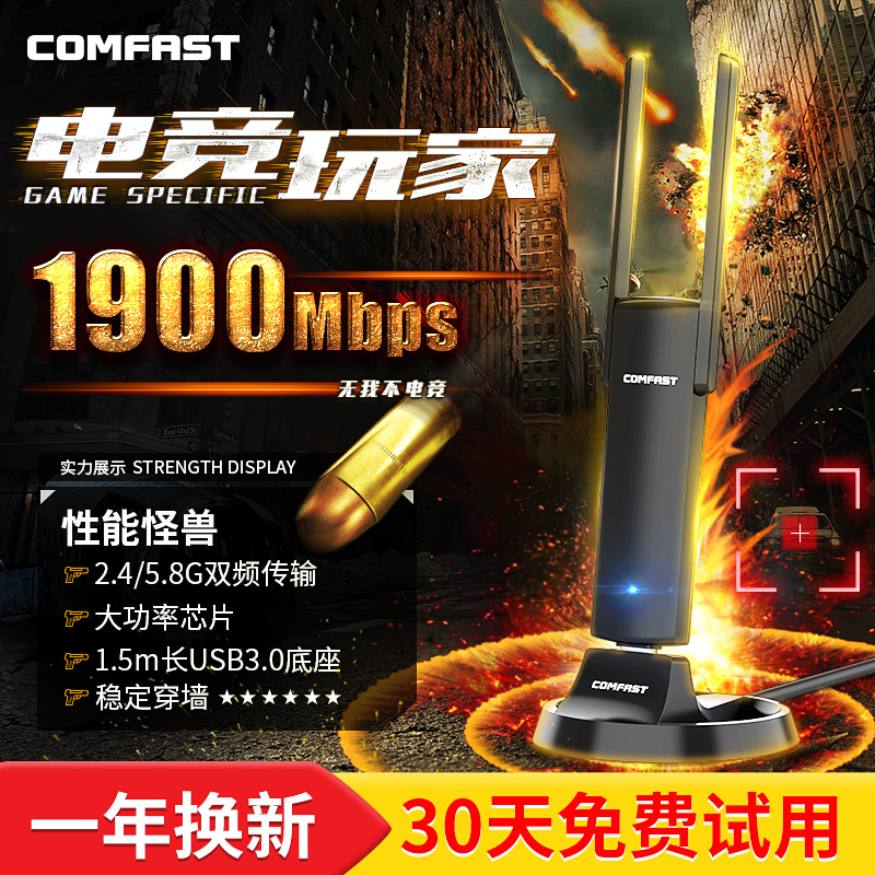 (E-sports game network card) COMFAST dual-band 1900m wireless network card desktop Gigabit 5G high-speed desktop computer wifi receiver external Notebook USB3 0 high power