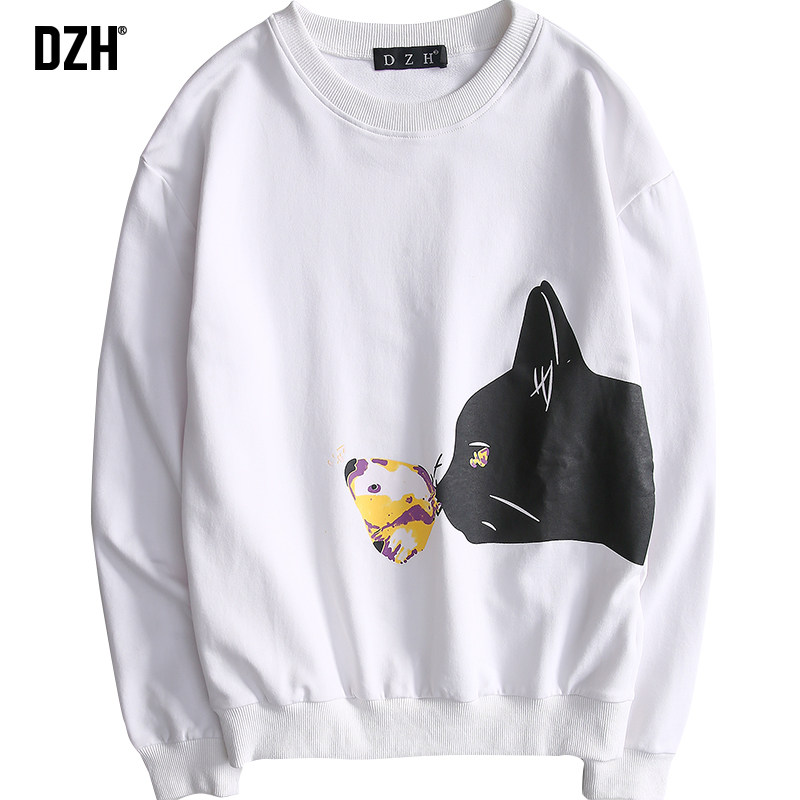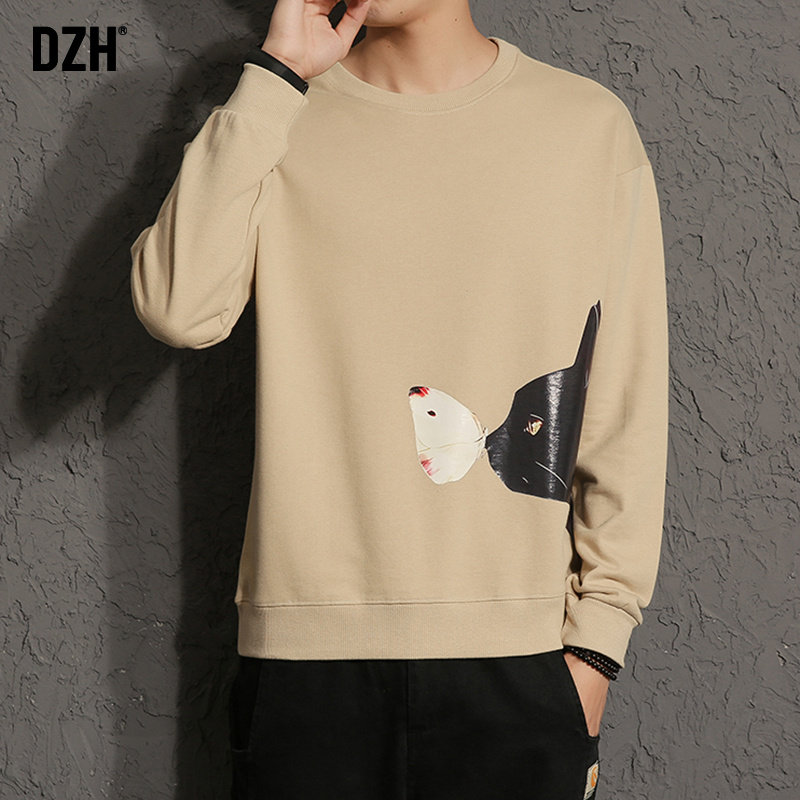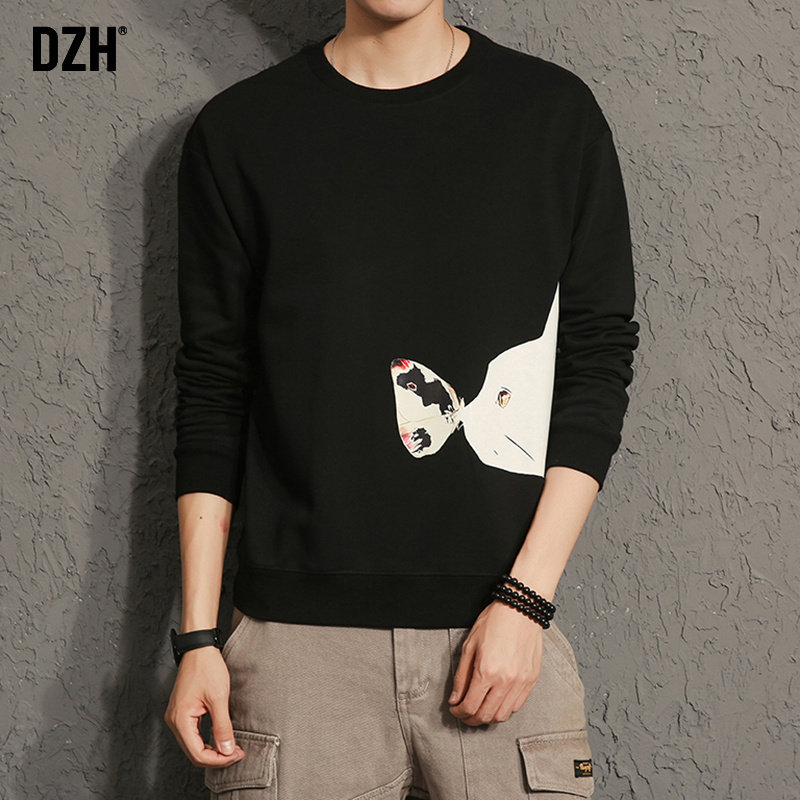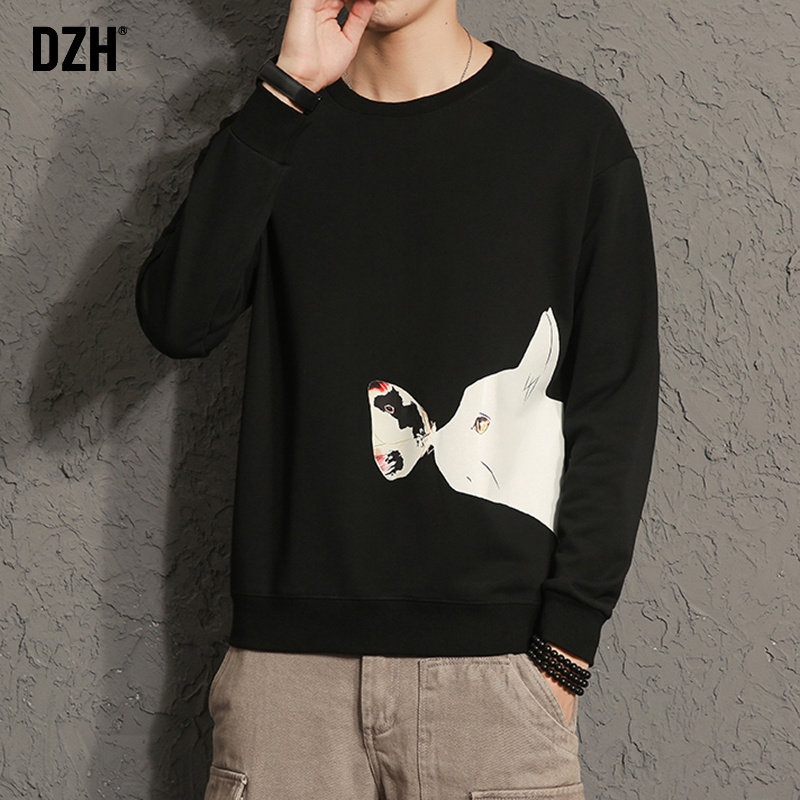 Good goods hooded round neck white thick cotton T men tide ins pullover 2021 autumn new printed jacket long-sleeved T-shirt men