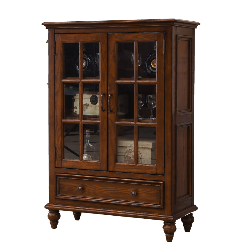 American wine cabinet bookcase solid wood display cabinet living room retro double door wine cabinet dining cabinet glass door simple storage cabinet