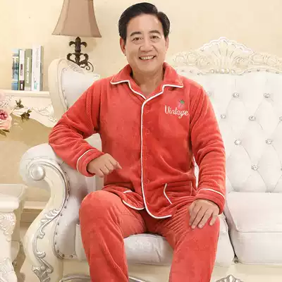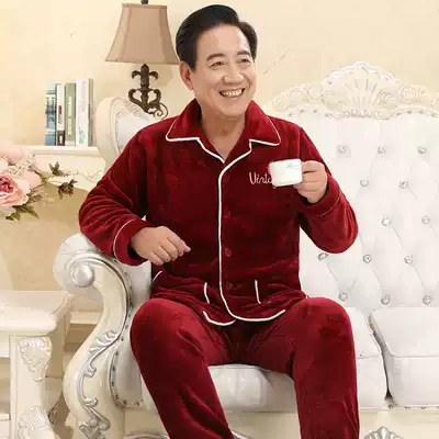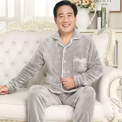 Middle-aged and elderly winter men's pajamas coral velvet thickened warm flannel middle-aged dad autumn and winter home clothes