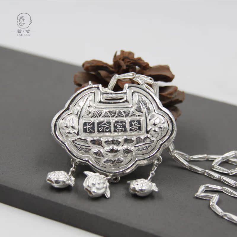 Baijia Lock Sterling silver 999 Baby lock Child lock Long life and wealth lock Unicorn lock Baby 100-day birthday gift