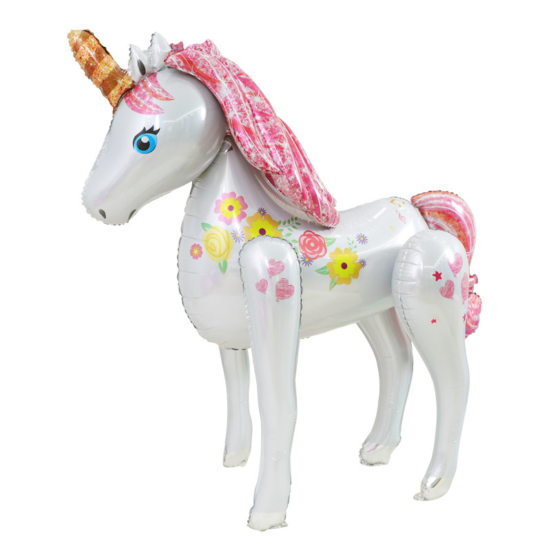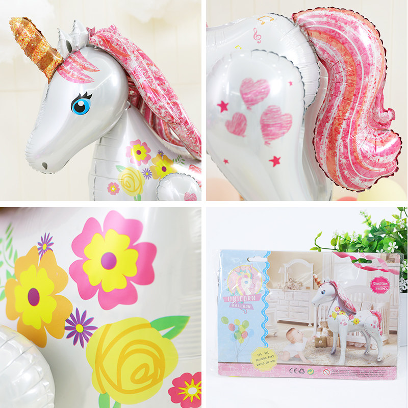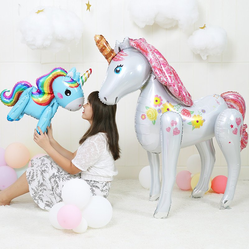 Large unicorn cartoon animal aluminum foil balloon Wedding party Baby birthday venue decoration standing horse balloon